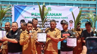 Ia menambahkan bibit kelapa genjah pandan manis diharapkan menjadi komoditas andalan baru bagi petani. Bupati juga menekankan pentingnya pendampingan berkelanjutan mulai dari penyaluran, penanaman, pemeliharaan, hingga pengelolaan hasil panen.