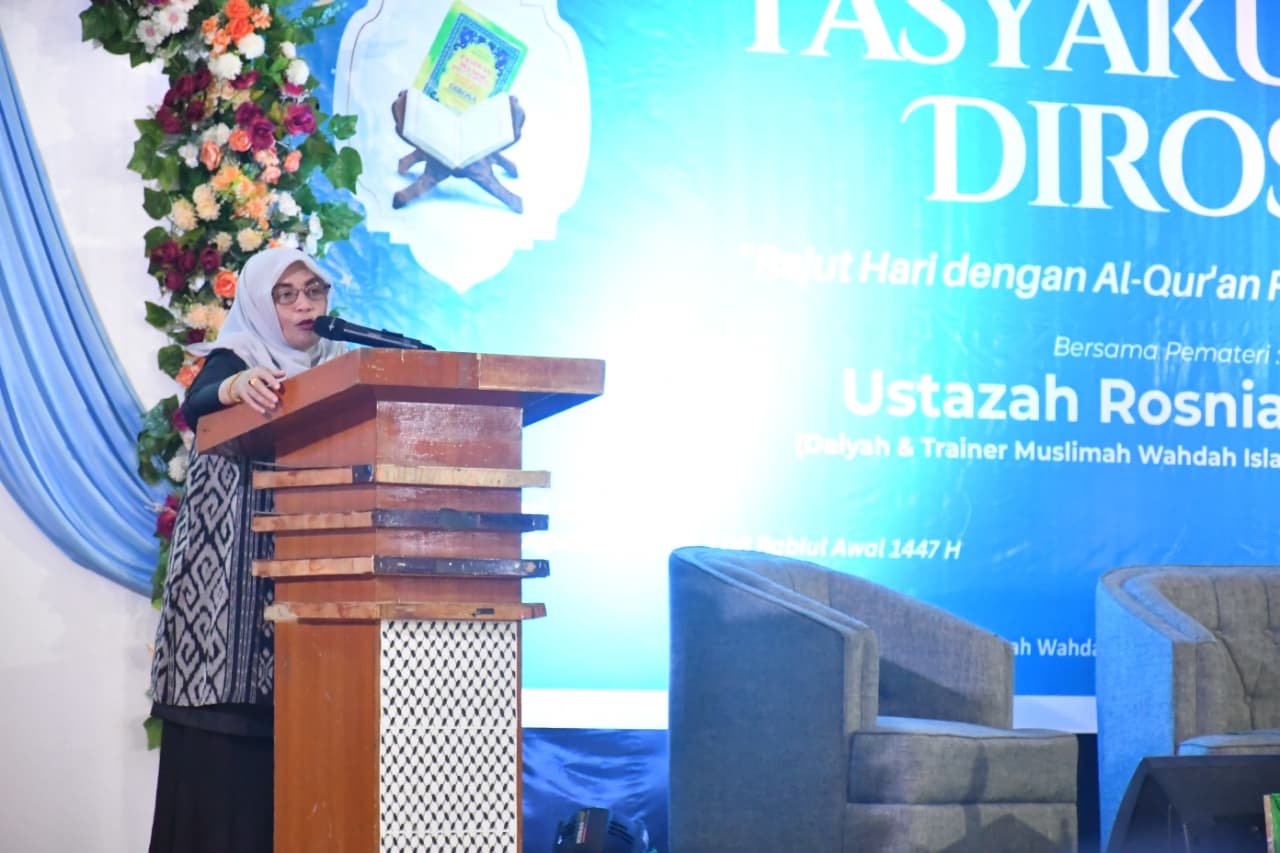 SINJAI, HBK, -SINJAI,- Bupati Sinjai, Hj. Ratnawati Arif menghadiri Tasyakuran Dirosa yang diselenggarakan oleh Muslimah Wahdah Islamiyah Sinjai di Auditorium Andi Azikin, Ahad (31/8/2025).