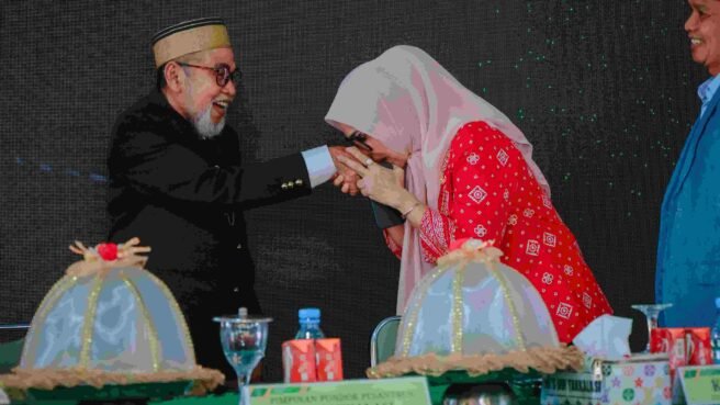 BARRU,HBK – Bupati Barru, A.Ina Kartika Sari, SH., M.Si, menghadiri acara penamatan santri Pondok Pesantren Al-Ikhlash Addary DDI Takkalasi tahun 2025. Acara ini dimeriahkan dengan berbagai kegiatan, termasuk penampilan seni dan budaya yang menunjukkan kreativitas dan bakat para santri.