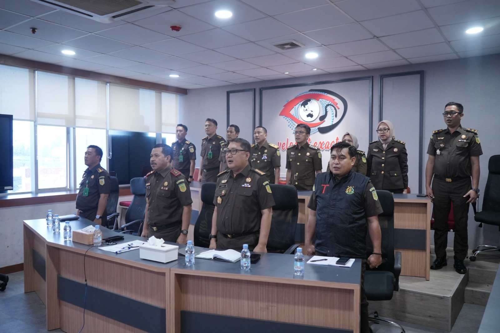 MAKASSAR,HBK — Kepala Kejaksaan Tinggi Sulawesi Selatan, Agus Salim didampingi Asisten Bidang Intelijen, Ardiansyah bersama kepala seksi dan jaksa fungsional pada Bidang Intelijen mengikuti pengarahan Jaksa Agung Muda Intelijen di Ruang Command Center Lantai 1 Kejati Sulsel, Senin (23/12/2024).