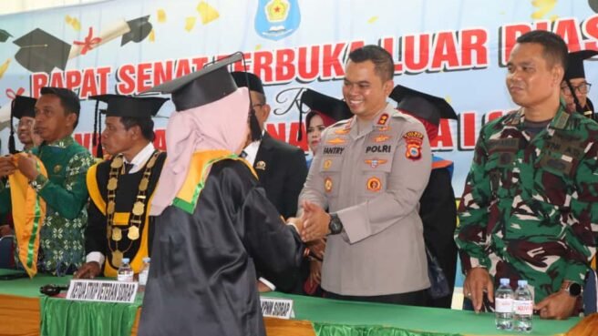 SIDRAP, HBK – Kepala Kepolisian Resor (Kapolres) Sidrap, AKBP Fantry Taherong, menghadiri Wisuda Angkatan XXIV Sekolah Tinggi Keguruan dan Ilmu Pendidikan (STKIP) Veteran Kabupaten Sidrap, Minggu (14/9/2025).