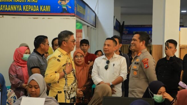 Wakil Bupati Dr. Ir. Abustan, M.Si yang turut meninjau pelayanan memberikan apresiasi atas penambahan jam operasional yang diberlakukan Polres Barru.