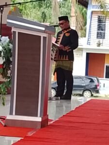 SUBULUSSALAM, HBK — Bahagia Maha (BM) salah satu tokoh pemekaran Kota Subulussalam sekaligus eks anggota DPRK periode 2019 – 2024, hari ini membacakan Naskah sejarah jadinya Subulussalam, di lapangan Sada Kata, komplek Perkantoran Wali Kota setempat, Minggu, (14/9/2025).