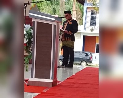 SUBULUSSALAM, HBK — Bahagia Maha (BM) salah satu tokoh pemekaran Kota Subulussalam sekaligus eks anggota DPRK periode 2019 – 2024, hari ini membacakan Naskah sejarah jadinya Subulussalam, di lapangan Sada Kata, komplek Perkantoran Wali Kota setempat, Minggu, (14/9/2025).