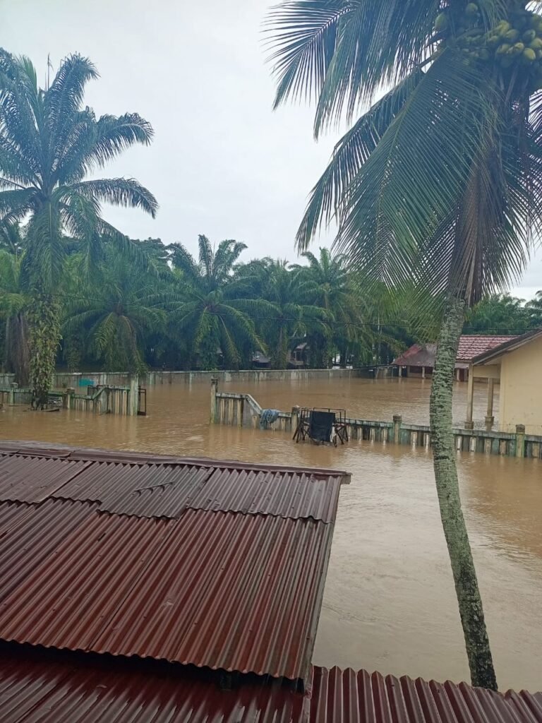 Kondisi ini semakin parah pada Kamis, 27 November 2025, setelah debit air sungai mulai meluap dan menggenangi permukiman warga serta fasilitas pendidikan.