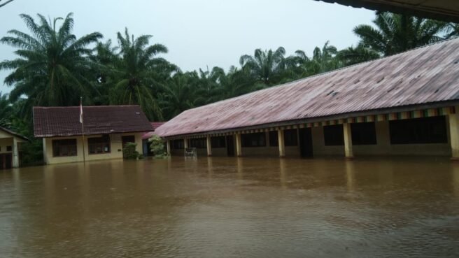 Kondisi ini semakin parah pada Kamis, 27 November 2025, setelah debit air sungai mulai meluap dan menggenangi permukiman warga serta fasilitas pendidikan.