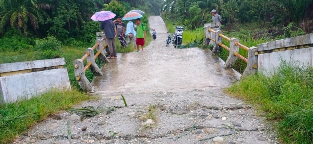 Jembatan di Dusun Mulia, Desa Penanggalan Timur, sepanjang 6 meter, mengalami kerusakan berat dengan nilai kerugian sekitar Rp 200 juta.