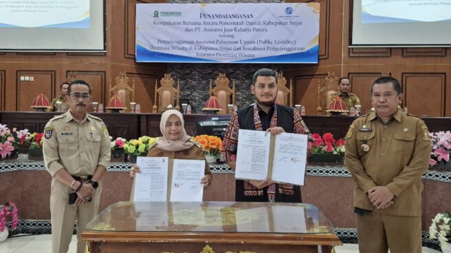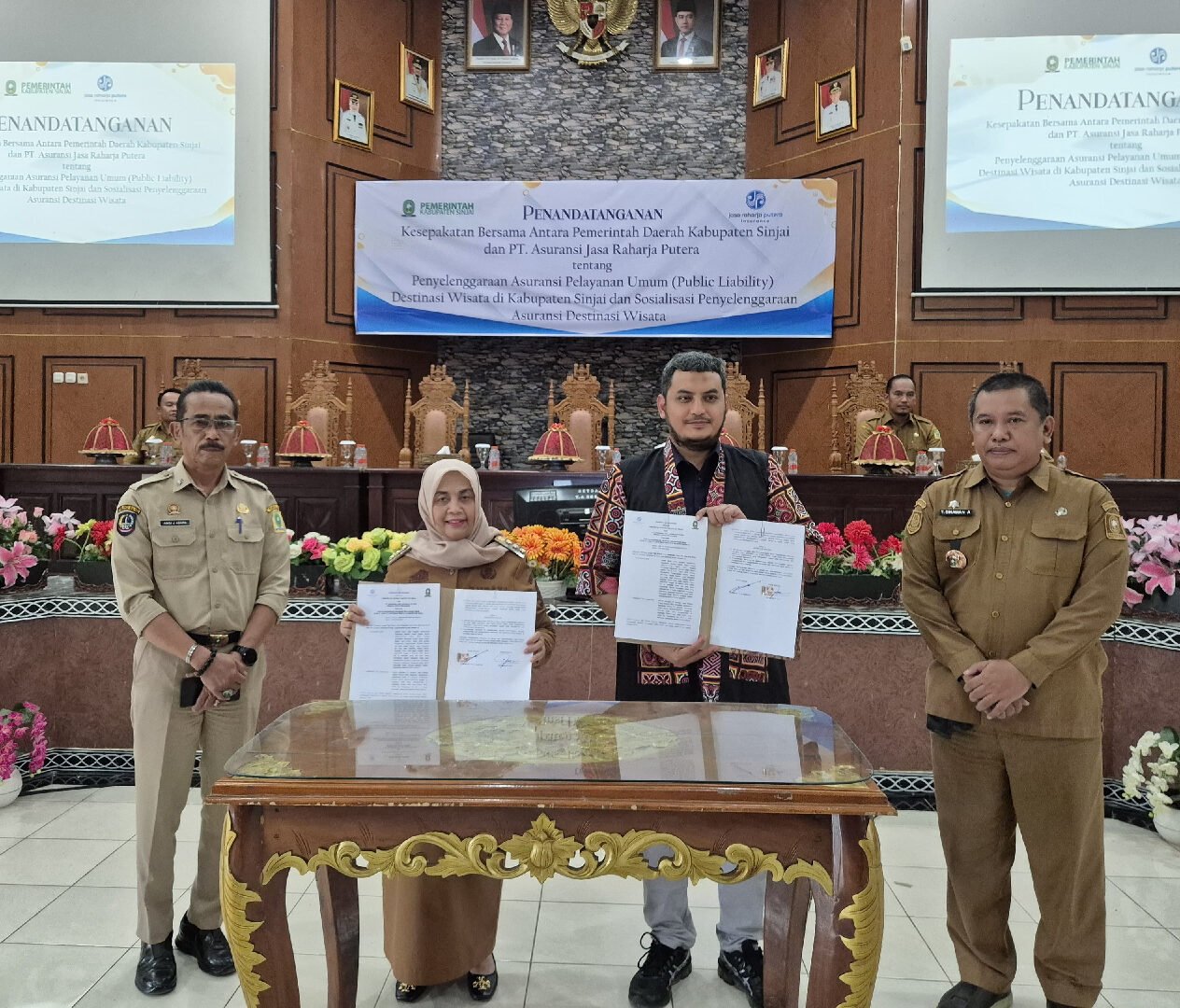 Penandatangan ini tentang Penyelenggaraan Asuransi Pelayanan Umum (Public Liability) Destinasi Wisata di Kabupaten Sinjai serta Sosialisasi Penyelenggaraan Asuransi Destinasi Wisata