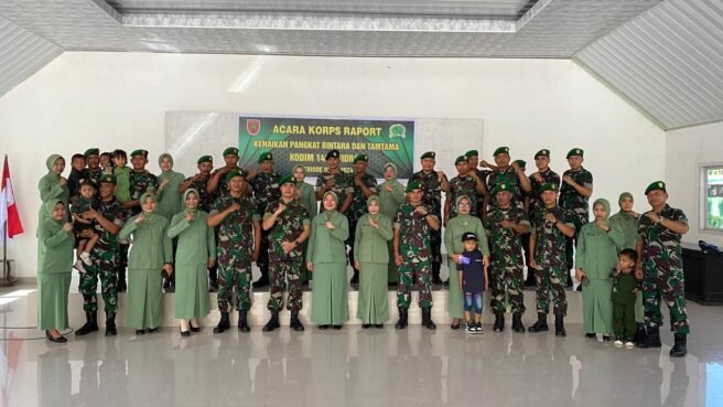 SIDRAP, HBK — Letkol Inf Awaloeddin,S.I.P. Dandim 1420/Sidrap Melaksanakan Acara Kegiatan Korps Rapot Kenaikan Pangkat Bintara & Tamtama Kodim 1420/Sidrap Periode 01-10-2024″.