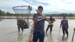 SIDRAP, HBK — Sorak-sorai riang terdengar sejak pagi hingga siang hari di tengah hamparan sawah Desa Passeno, Kecamatan Baranti, Kabupaten Sidrap. Warga tampak antusias, saling menyemangati, dan tertawa setiap kali seekor tikus berhasil ditangkap.