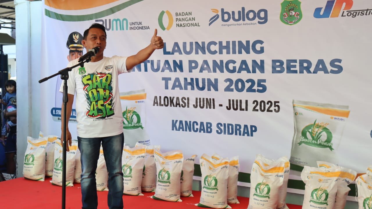 Penyerahan bantuan ini merupakan hasil sinergi antara Pemkab Sidrap, Perum Bulog Cabang Sidrap, dan Dinas Sosial dalam program nasional bantuan pangan beras untuk alokasi Juni–Juli 2025.
