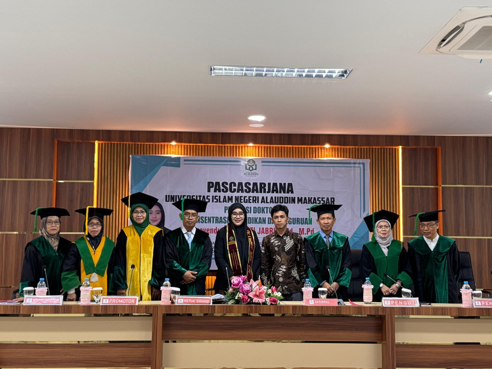 Dalam sidang promosi tersebut, Umiyati diuji oleh tim penguji yang terdiri dari para profesor dan doktor berpengalaman, termasuk Promotor Prof. Dr. Hj. Djuwairiah Ahmad, M.Pd., M.TESOL, serta penguji eksternal Dr. Lasunra, M.Hum.