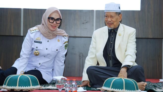 BARRU,HBK – Bupati Barru Andi Ina Kartika Sari. SH., M.Si membuka secara resmi Bimbingan Manasik Haji Reguler Terpadu Tingkat Kabupaten Barru Musim Haji Tahun 1446 H / 2025 M di Baruga Singkeru’ Adae Rumah Jabatan Bupati Barru, Rabu (09/04/2025)