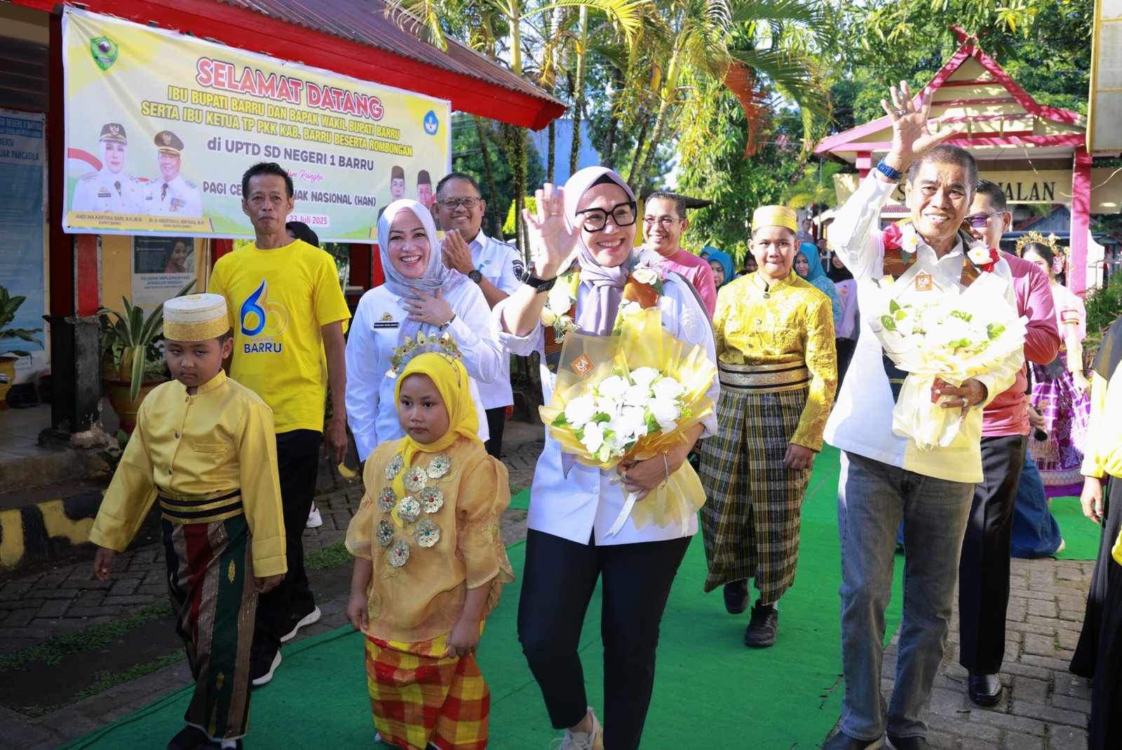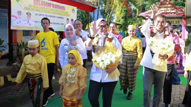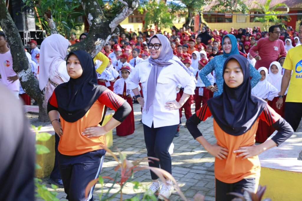 Kegiatan ini dihadiri langsung Bupati Barru, Andi Ina Kartika Sari, S.H., M.Si., yang tampil hangat, penuh kasih sayang, dan membaur akrab bersama 579 siswa SDN 1 Barru.
