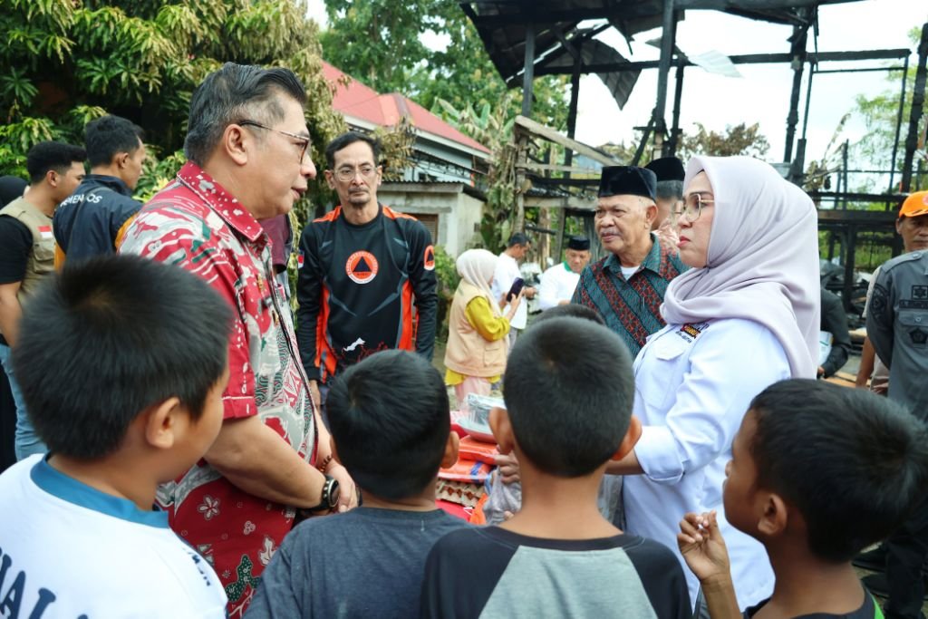 BARRU,HBK — Bupati Barru Andi Ina Kartika Sari, S.H., M.Si dan Wakil Bupati Barru Dr. Ir. Abustan A. Bintang, M.Si kunjungi korban kebakaran di Lingkungan Gempunge Kelurahan Mangempang Kecamatan Barru Kabupaten Barru, Jum’at (21/03/2025) Sore.