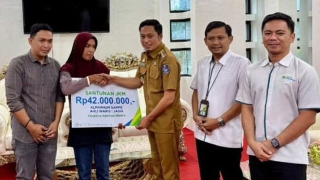 Bupati Muh.Yusuf Ritangnga mengatakan, Santunan JKM yang diberikan sebesar Rp42 juta. Santunan ini di peruntukkan bagi Ahli Waris Almarhum Sampe, yakni Jasia.