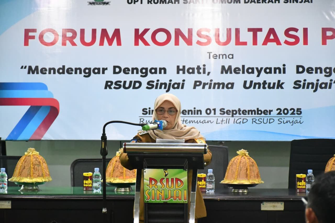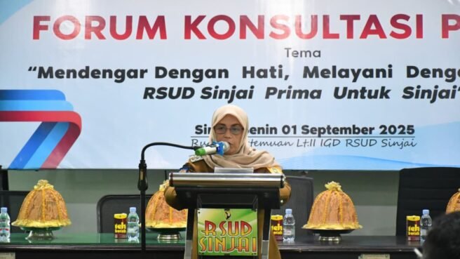 SINJAI, HBK, – Bupati Sinjai, Hj Ratnawati Arif menghadiri sekaligus membuka kegiatan Forum Konsultasi Publik (FKP) yang digelar Manajemen Unit Pelaksana Teknis Rumah Sakit Umum Daerah (UPT RSUD) Kabupaten Sinjai di aula lantai II RSUD Sinjai, Senin, (1/9/2025) pagi.