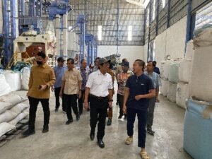SIDRAP, HBK — Bupati Sidrap, Syaharuddin Alrif, bersama Rektor Universitas Hasanuddin (Unhas), Prof. Jamaluddin Jompa, mengunjungi pabrik beras PB Rahma 35 di Kelurahan Lautang Benteng, Kecamatan Maritengngae, Selasa (30/9/2025).
