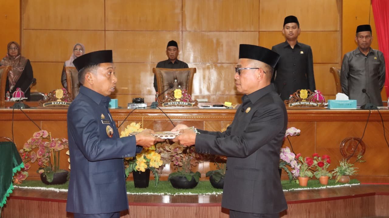SIDRAP, HBK — Bupati Sidenreng Rappang, H. Syaharuddin Alrif, menghadiri rapat paripurna DPRD dalam rangka pengambilan keputusan terhadap dua Rancangan Peraturan Daerah (Ranperda) inisiatif DPRD, Kamis (25/9/2025).