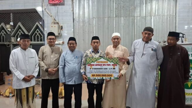 SIDRAP, HBK – Bupati Sidrap, H. Syaharuddin Alrif, SIP,MM, menyerahkan bantuan hibah sebesar Rp500 juta kepada pengurus Masjid Taqwa Muhammadiyah Rappang, Kecamatan Panca Rijang, Kabupaten Sidrap, pada Kamis malam (6/3/2025).