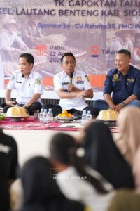 SIDRAP, HBK — Bupati Sidrap Syaharuddin Alrif menghadiri tudang sipulung mempersiapkan musim tanam (MT) II guna mendukung pencapaian target produksi 1 juta ton gabah di Kolam Ikan Andi Ato, Talumae, Kelurahan Lautang Benteng, Kecamatan Maritengngae, Rabu (22/4/2026).