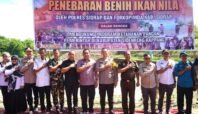 Perkuat Ketahanan Pangan dan Pelestarian Ekosistem Air Tawar, Polres Ajak Pemkab dan Forkompimda Sidrap Restocking 10.000 Benih Ikan Nila