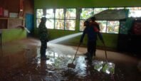 Babinsa Koramil 1420-05/Dua Pitue Bersama Damkar Bersihkan Sisa Lumpur di Sekolah Pasca Banjir