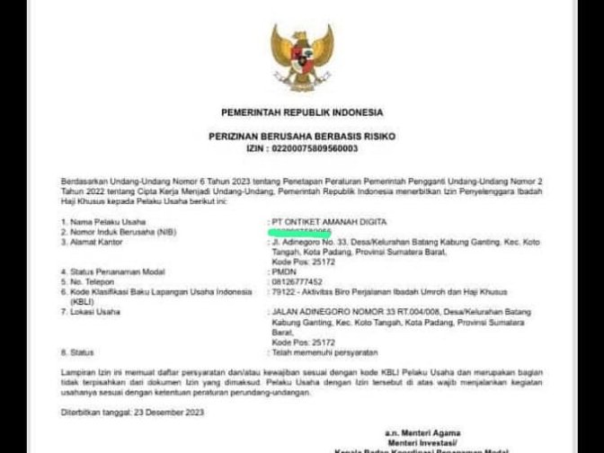 Dikatakannya bahwa perusahaan yang dipimpinnya itu bermitra kerja dengan PT Ontiket Amanah Digital yang mengantongi izin Penyelenggaraan Ibadah Haji Khusus (PIHK).