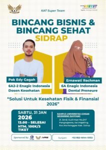 SIDRAP, HBK — Komitmen membangun masyarakat yang sehat secara fisik sekaligus mandiri secara finansial kembali ditegaskan melalui kegiatan Bincang Bisnis & Bincang Sehat Kabupaten Sidrap yang digelar pada Sabtu, 31 Januari 2026, bertempat di Kampus Universitas Ichsan Sidrap, kemarin.