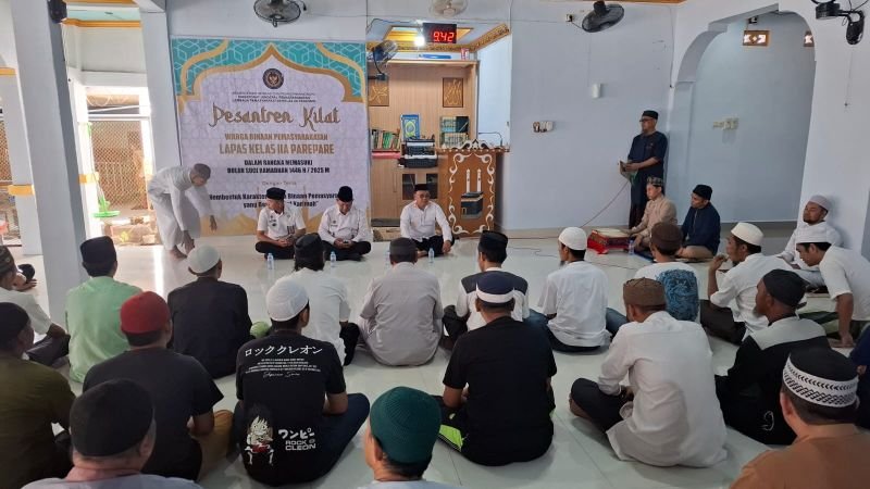 Pelaksanaan kegiatan pesantren selama bulan Ramadhan 1446 H Tahun 2025 yang telah dibuka langsung oleh Kepala Lapas IIA Parepare Totok Budiyanto, A.Md.IP, SH hari Rabu tanggal 26 Februari 2025 selama satu bulan, dimulai tanggal 03 Maret 2025 dan kegiatan akan ditutup sampai dengan tanggal 31 Maret 2025.