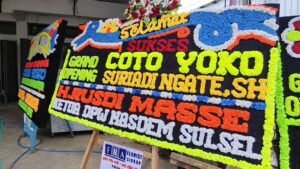 Karangan bunga RMS berdiri mencolok sebagai simbol dukungannya kepada Owner Coto Yoko, Suriadi Ngate SH, sosok muda kreatif Sidrap yang dikenal terus menghadirkan inovasi dalam dunia usaha.