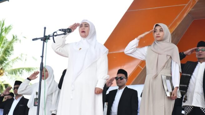 SINJAI, HBK, – Bupati Sinjai, Hj. Ratnawati Arif bertindak sebagai Inspektur Upacara (Irup) pada Apel Peringatan Hari Santri Tahun 2025 yang berlangsung di Tribun Alun-Alun Sinjai Bersatu, Rabu (22/10/2025) pagi.