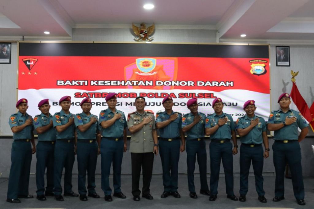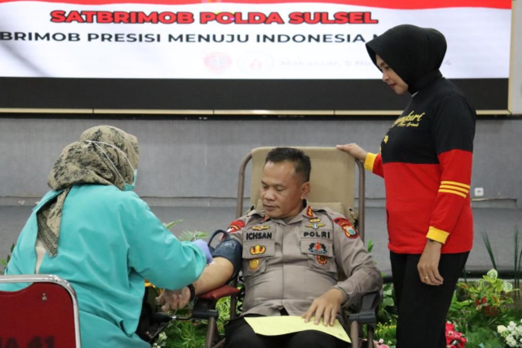 MAKASSAR, HBK — Sat Brimob Polda Sulsel menyambut HUT ke-79 Korps Brimob Polri dengan menggelar Donor Darah.