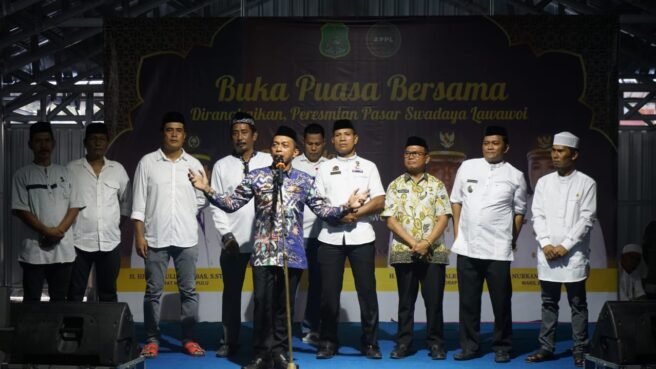 SIDRAP, HBK – Bupati Sidrap, H. Syaharuddin Alrif, meresmikan Pasar Swadaya Lawawoi sekaligus menghadiri acara buka puasa bersama yang berlangsung di Kelurahan Bangkai, Kecamatan Watang Pulu, Sidrap, Kamis (20/3/2025).