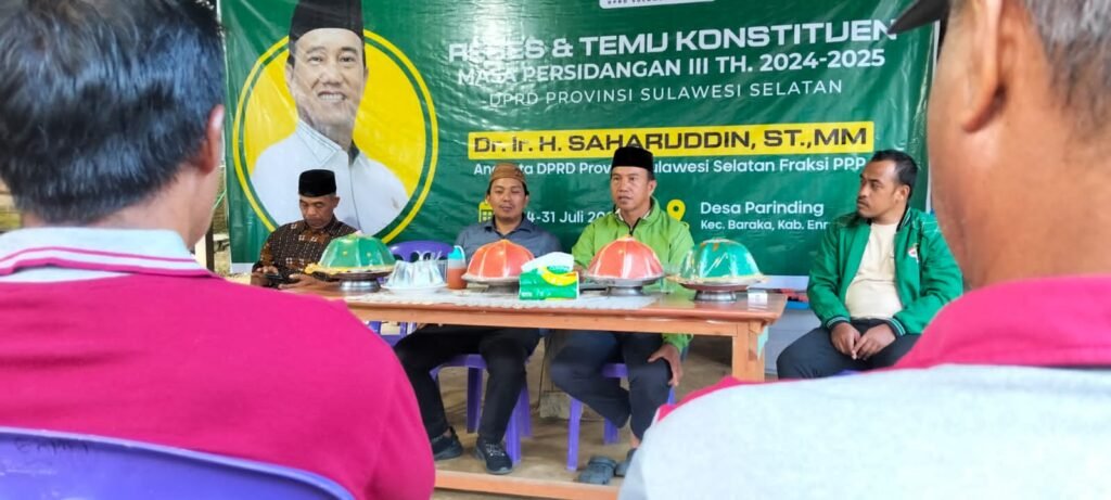 ENREKANG, HBK — Anggota DPRD Provinsi Sulawesi Selatan dari Fraksi PPP, Dr. Ir. H. Saharuddin, ST., MM., menggelar kegiatan Reses dan Temu Konstituen Masa Persidangan III Tahun 2024–2025 di Desa Parinding, Kecamatan Baraka, Enrekang, Minggu (27/7/2025).