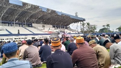 Sejak pagi, masyarakat dari berbagai wilayah, khususnya Kecamatan Maritengngae, telah memenuhi stadion dengan membawa sajadah masing-masing.