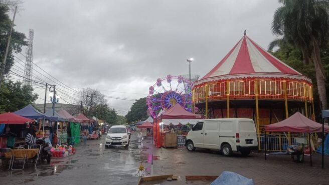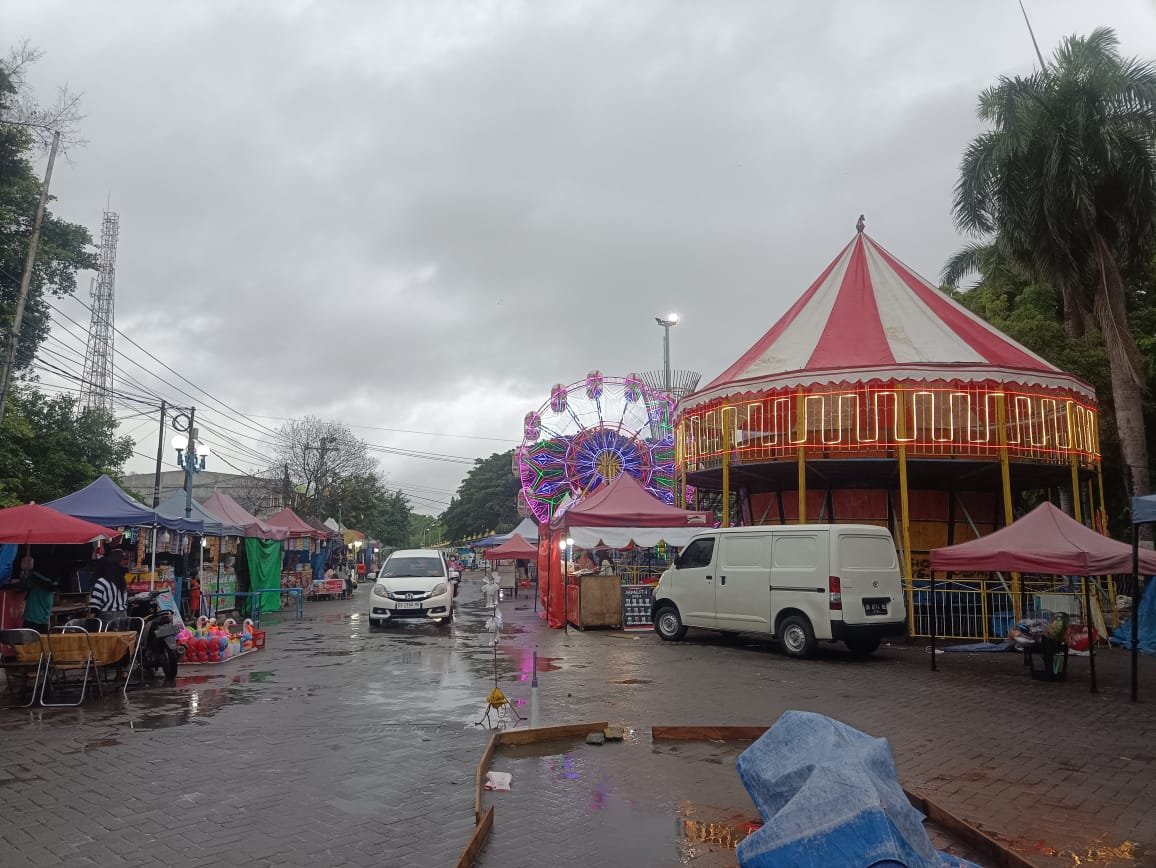 Di lapangan, aktivitas pasar malam sudah mulai berlangsung. Kegiatan tersebut tak hanya menampilkan hiburan, tetapi juga melibatkan sektor UMKM yang diharuskan membayar biaya sewa lokasi.