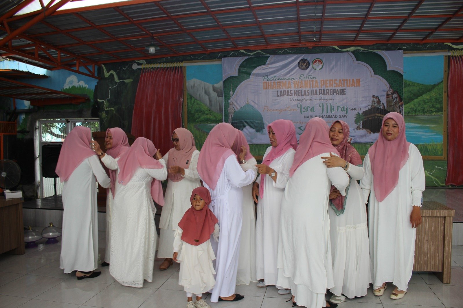 Dalam kesempatan ini Ketua Dharma Wanita Persatuan (DWP) Lapas IIA Parepare Ny. Nurhayati Totok Budiyanto bersama anggota menggelar peringatan Isra’ Mi’raj Nabi Muhammad SAW dan sekaligus menyambut datangnya bulan suci Ramadhan Tahun 1446 H/2025 M.