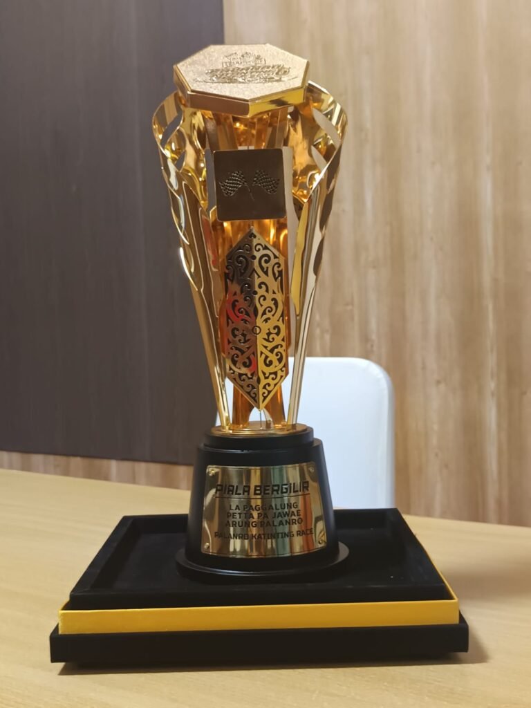 Bentuk dukungan serta support dalam kegiatan kegiatan positif yang dilaksanakan di Kampung halamannya DR Andi Entong mempersembahkan dan mendesain khusus 1 Piala Bergilir yang diberi nama Piala bergilir “La Paggalung Petta Pajjawae Arung Palanro” serta hadiah uang Tunai 10 Juta Rupiah untuk Pemenang Lomba Balap Perahu Katinting.