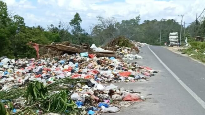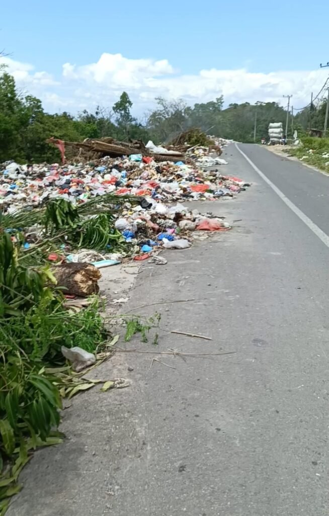 Sampah-sampah yang dibuang sembarangan, seperti plastik, sisa makanan, dan bahkan potongan kayu serta ranting pohon, kini menumpuk di pinggir jalan hingga menutupi sebagian badan jalan, membahayakan pengendara dan mengganggu aktivitas sehari-hari.