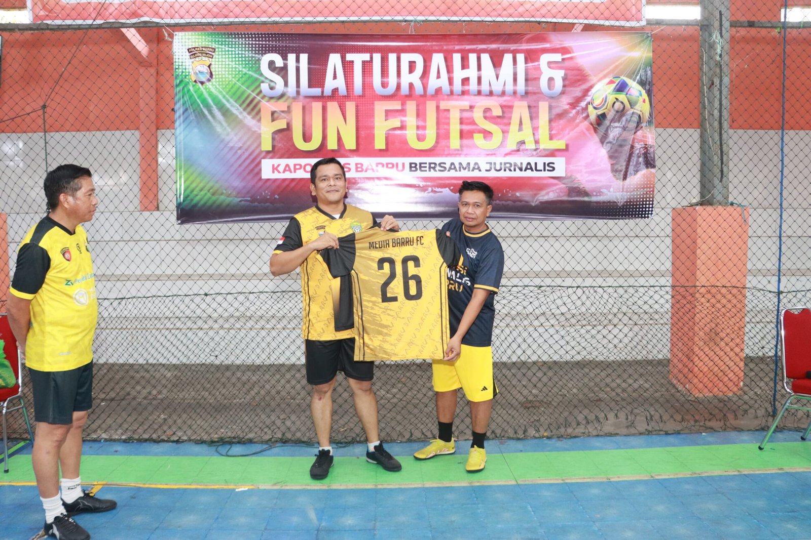 Sebagai bentuk apresiasi dan kepedulian terhadap insan pers, Kapolres Barru juga memberikan seragam futsal kepada para awak media. Ia menyampaikan terima kasih atas dukungan media dalam menyebarluaskan informasi positif terkait kegiatan dan program Polres Barru.