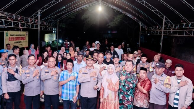 BARRU,HBK – Kapolres Barru AKBP Ananda Fauzi Harahap, S.I.K., M.H., menyambangi warga Kecamatan Barru melalui kegiatan Ngopi Kamtibmas yang digelar di Pos Satkamling Pangkalan Komunitas Ojek Kamtibmas, Kelurahan Sumpang Binangae, Kabupaten Barru, Jumat malam (8/8/2025).