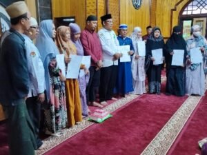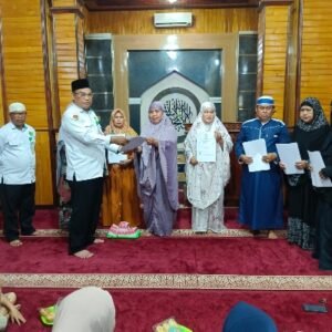 Penyerahan sertifikat halal dilakukan di Masjid Ar-Rahman Baula oleh Kepala Kantor Urusan Agama (KUA) Tellu Limpoe, H. Palwi Rakhman, S.Ag., M.Ag., disaksikan para penyuluh KUA, pendamping Halal Centre UNIMEN, imam masjid, dan para pelaku usaha.