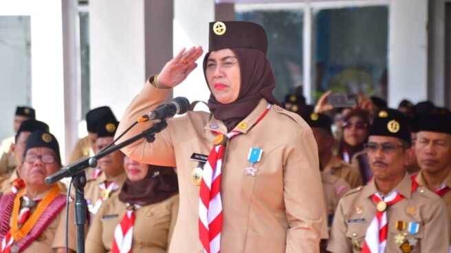 SINJAI, HBK, – Bupati Sinjai, Hj. Ratnawati Arif, selaku Ketua Majelis Pembimbing Cabang (Mabicab) Gerakan Pramuka Kabupaten Sinjai, memimpin langsung Apel Besar dalam rangka peringatan Hari Pramuka ke-64 tingkat Kabupaten Sinjai, yang digelar pada Jumat (15/8/2025).