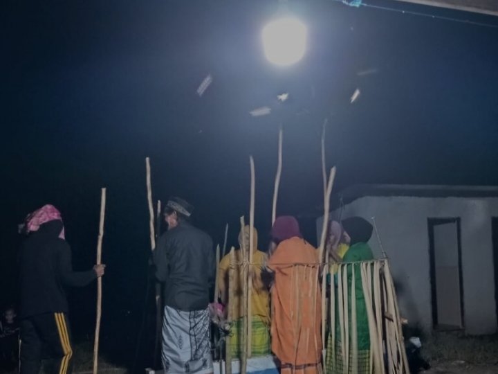 Acara berlangsung Jumat malam (18/4/2026) dengan khidmat. Hadir Hasnah Sultan bersama perangkat desa dan tokoh-tokoh masyarakat yang turut menjaga jalannya prosesi adat dari awal hingga akhir.