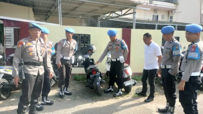 BARRU,HBK – Dalam rangka meningkatkan disiplin internal dan sebagai langkah preventif terhadap potensi pelanggaran, Seksi Profesi dan Pengamanan (Propam) Polres Barru melaksanakan kegiatan penertiban dan pemeriksaan kelengkapan kendaraan dinas personel. Kegiatan ini dilaksanakan di halaman Mapolres Barru pada Senin pagi (13/10), di bawah pimpinan langsung Kasi Propam Polres Barru, Iptu Asdar Asri, S.E.