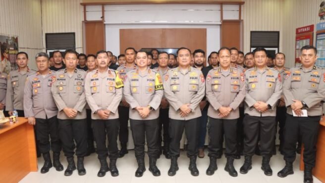 SIDRAP, HBK — Kapolres Sidrap AKBP Dr. Fantry Taherong, S.H., S.I.K., M.H. menerima kunjungan Tim Itwasum Polri yang dipimpin oleh KBP Heru Trisasono, S.I.K., M.Si pada hari ini, Rabu (15/1/2025).