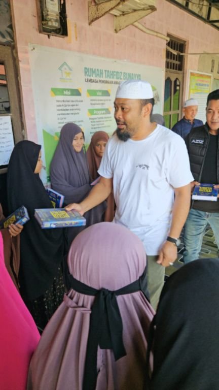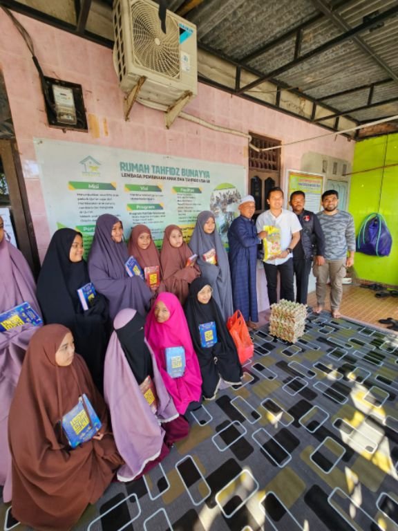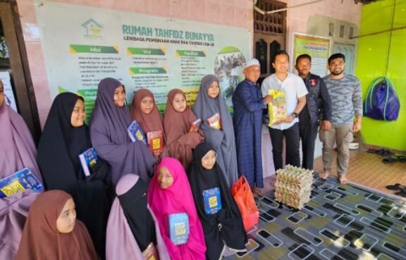 Dalam kegiatan tersebut, personel Satuan Reskrim Polres Sidrap menyerahkan bantuan berupa Kitab Suci Al-Qur’an dan paket sembako kepada pengurus Rumah Tahfidz Bunayya Yatim dan Dhuafa.