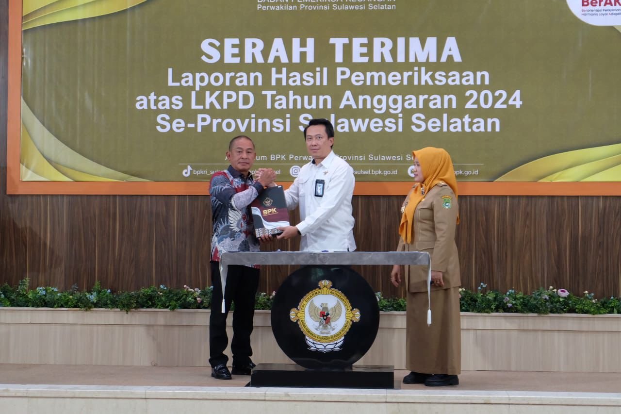 Keberhasilan tersebut terungkap dalam penyerahan Laporan Hasil Pemeriksaan (LHP) LKPD oleh Badan Pemeriksa Keuangan (BPK) RI di Kantor BPK Perwakilan Provinsi Sulawesi Selatan, Jalan A.P. Pettarani, Makassar, Senin (26/5/2025).