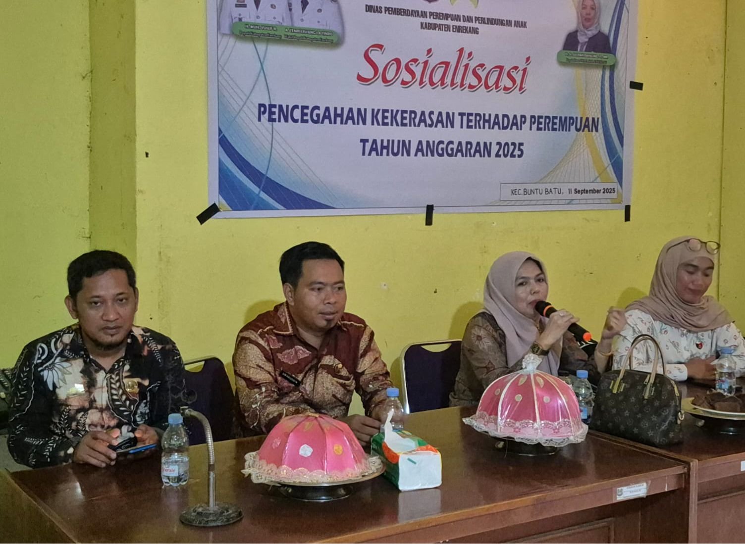 ENREKANG, HBK — Dinas Pemberdayaan Perempuan dan Perlindungan Anak (DP3A) Kabupaten Enrekang menggelar sosialisasi pencegahan kekerasan terhadap perempuan, Kamis, 11 September 2025.